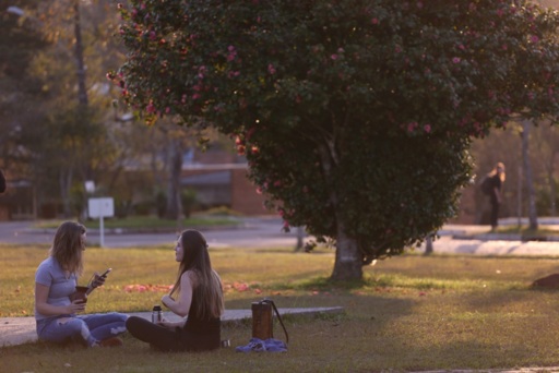 Na Universidade Federal de Santa Maria (UFSM), as áreas verdes ganharam um colorido com as pessoas caminhando, andando de bicicleta ou até mesmo sentadas, colocando a conversa em dia. Foi o que as amigas Tainá Schott, 22 anos, e Nicole Orth, 22, decidiram fazer. As duas levaram o chimarrão e aproveitaram o calor ao ar livre.