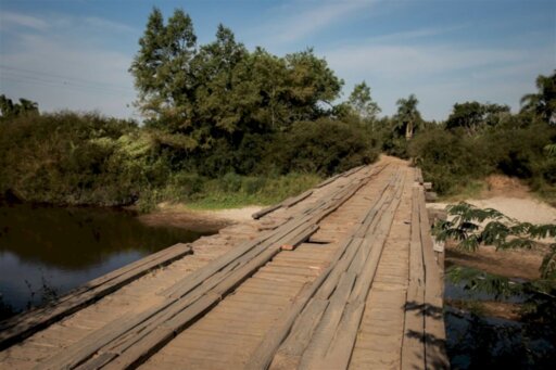 Uma pequena placa com dizeres em azul tenta alertar os motoristas que passam pela ponte sobre o Rio Vacacaí, na localidade de Banhados, interior de Santa Maria. Há alguns anos, os moradores da comunidade, que pertence ao Distrito de Santa Flora, convivem com as péssimas condições da ponte, que fica bem na divisa com o município de São Gabriel. A estrutura de madeira foi construída há 55 anos e atualmente coleciona problemas: tábuas quebradas ou podres, buracos e pregos soltos.