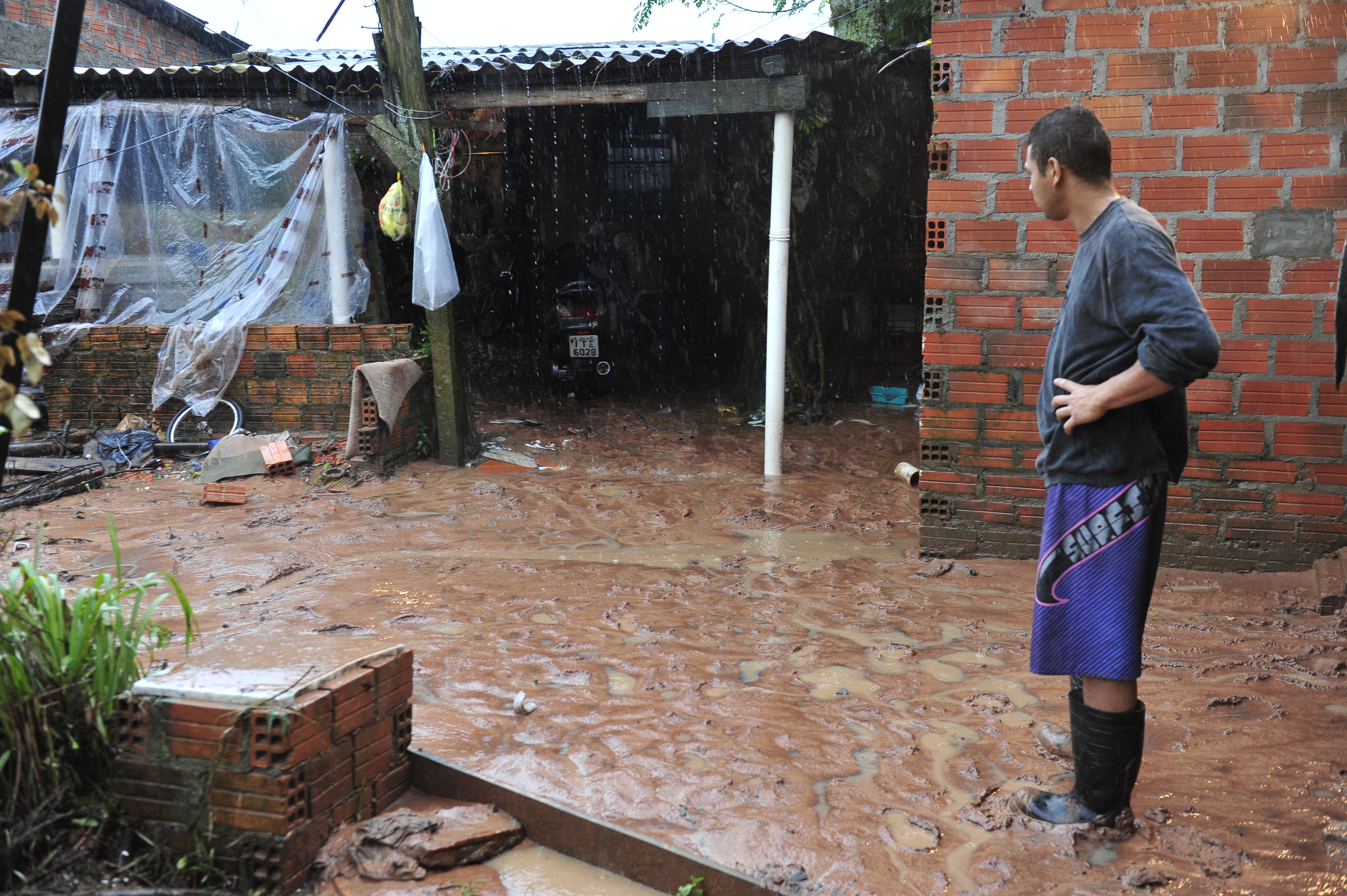O floricultor Dionatan Rodrigues Vargas, 21 anos, contou que viveu momentos de tensão quando a água e o barro tomaram conta da casa onde mora com os pais e mais seis irmãos, na Rua Onofre Gonçalves Ferrão, no bairro Tomazetti. Assim como ele, cerca de 15 casas localizadas próximo a uma construção foram atingidas pela água. C"