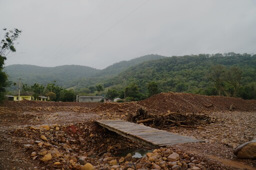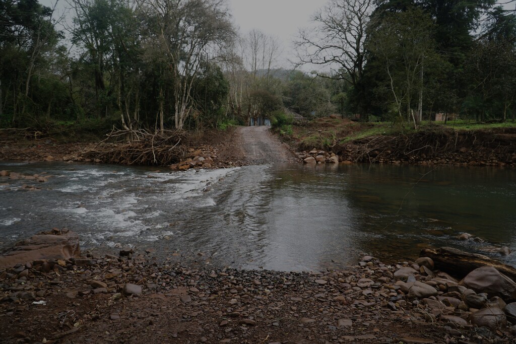 Na mesma localidade, a aposentada e agricultora Dileusa Dambrósio Fernandes, 55 anos, vive uma rotina de incertezas. A ponte que ficava próxima a sua casa foi levada na enchente de 2024. Para não ficarem completamente isolados, as cerca de 12 famílias da vizinhança construíram uma passagem improvisada, uma "pinguela".