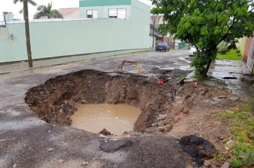 - Essa rua alaga faz muito tempo. Agora, devido ao fluxo da outra obra fez esse buraco. Ontem (sábado) era um buraco bem menor. Essa noite aconteceu isso - conta o servidor público. Moura diz estar com o carro preparado caso tenha que deixar sua casa, que fica em frente ao buraco, já que a entrada da garagem rachou.