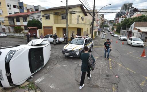 Mais um acidente aconteceu na esquina entre as ruas Duque de Caxias e Felipe de Oliveira, no Bairro Nossa Senhora Medianeira. Desta vez, dois carros colidiram no começo da tarde desta terça-feira. Um dos veículos, um Gol branco, ficou virado na esquina, mas nenhum dos ocupantes tiveram ferimentos graves.