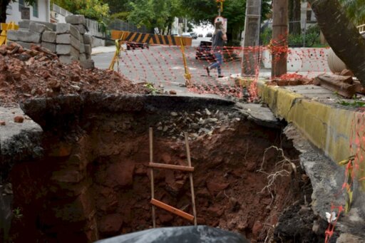 No centro da cidade, uma cratera estava aberta na Rua Silva Jardim, quase esquina com a Floriano Peixoto. No local, havia um bueiro. O trecho está sinalizado para motoristas. Conforme a prefeitura, o buraco foi aberto para reparar um dano oriundo do escoamento de água da chuva na galeria. Servidores trabalham no conserto da galeria e devem seguir até a tarde de sexta-feira. Caso a chuva retorne, o prazo para o reparo será estendido.