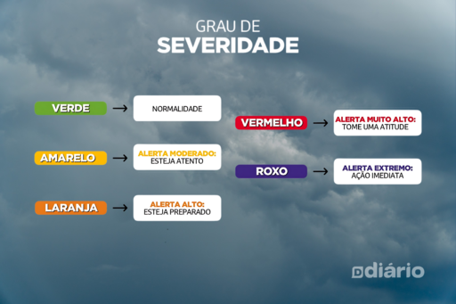 Os novos alertas serão divulgados nas seguintes cores, representando sua gravidade: