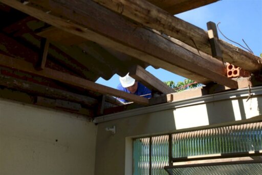 A Escola Municipal de Ensino Fundamental (EMEF) João Hundertmark, no distrito de Boca do Monte, começou, nesta terça-feira, a consertar o telhado. A estrutura foi gravemente atingida no temporal do dia 27 de fevereiro, durante o Carnaval, prejudicando quatro das cinco salas de aula. Segundo a prefeitura, o prazo previsto para execução da reforma é de 20 dias, com custo de R$ 15,3 mil.