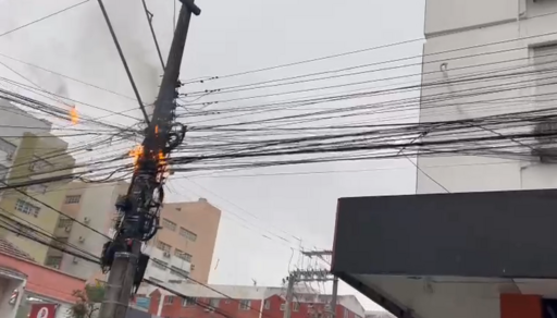 Na manhã desta sexta-feira (7), fios de um poste localizado na esquina entre as ruas dos Andradas e Duque de Caxias pegaram fogo. Pelas imagens, apesar da chuva, é possível ver as chamas que tomam conta do emaranhado de fios de energia elétrica. O fato chamou atenção de quem passava pelo local e se dá no momento em que se discute a situação dos vários emaranhados de fios em desuso nos postes da área central.