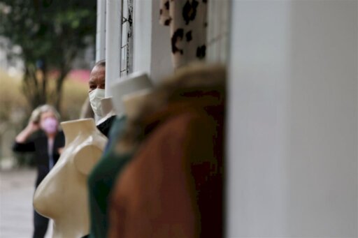 Uma longa fila também se formou em frente a uma loja de costura, na Rua do Acampamento. As pessoas buscavam materiais para confeccionar máscaras caseiras de proteção.