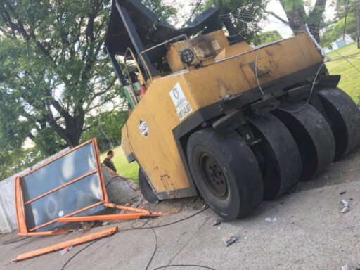 "A respeito do incidente ocorrido na Avenida Presidente Vargas, no início da tarde desta quinta-feira, envolvendo um rolo compactador de propriedade da Cotrel Terraplenagem Eireli, uma das empresas contratadas pelo Executivo para realizar as obras de recuperação do pavimento da avenida, a Prefeitura esclarece que tomou todas as providências cabíveis em relação ao fato. A empresa Cotrel foi acionada imediatamente e se responsabilizará por todos os danos causados em decorrência da máquina ter perdido o controle e atingido dois postes de concreto da via, um veículo da Prefeitura e um caminhão que estavam estacionados, um abrigo de ônibus e parte do muro da Vila Militar, no trecho entre as avenidas Borges de Medeiros e Liberdade.