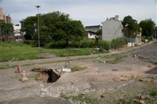 A esquina das ruas Gomes Carneiro e 20 de Setembro está completamente interditada porque a cratera se estende entre os meio-fios. Mas o problema é ainda maior. Por toda a extensão da galeria pluvial, há partes que estão cedendo e se tornando buracos. Um pouco adiante, passando a Rua Senador Cassiano, alguns moradores tiveram que ser desalojados porque suas casas corriam o risco de desabar na sanga. Agora, resta apenas mato onde antes ficavam as residências.