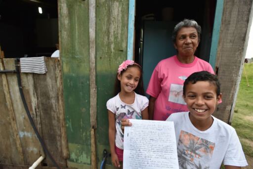 Além da cesta básica que o pequeno pediu para a família, Eliane também levou presentes para as crianças e roupas para a avó, Sirlei Falcão, 60 anos. Ela conversou com a família e conheceu o local onde os três moram no Bairro Passo D'Areia. A felicidade estava estampada no rosto de cada um deles.