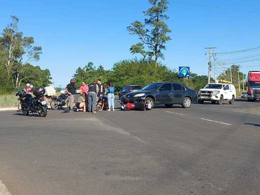 Segundo informações do Comando Rodoviário da Brigada Militar, o motociclista, de 23 anos, e a passageira, de 22 anos, foram socorridos e encaminhados para atendimento médico. Já o motorista do carro não teve lesões. O trânsito ficou parcialmente interrompido.