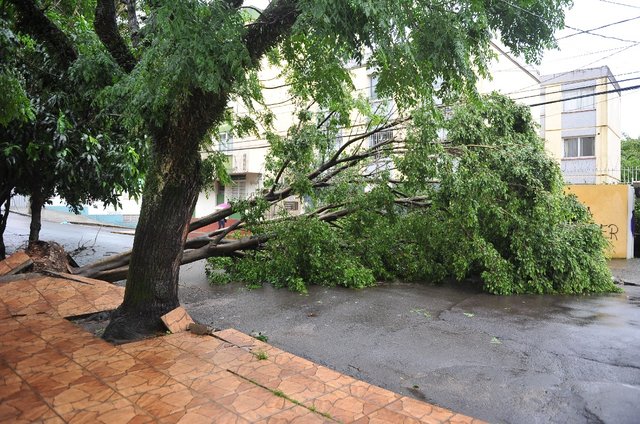 A mesma situação foi vista na esquina das ruas Venâncio Aires e Caldas Júnior. Equipes do Corpo de Bombeiros e Defesa Civil já atuavam na remoção das árvores. Na Avenida Presidente Vargas, quase na esquina com a Conde de Porto Alegre, a sacada de um apartamento foi destruída pela tempestade. Um pouco mais distante dali, no Posto Bambino, na Avenida Dores, o telhado foi arrancado. Uma casa que fica na Rua General Neto também foi bastante danificada.
