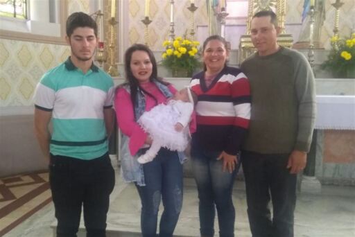 A pequena já foi batizada na Igreja Nossa Senhora das Dores, em 26 de agosto junto dos padrinhos, Matheus Rigão Vargas e Thais Rigão Dias.