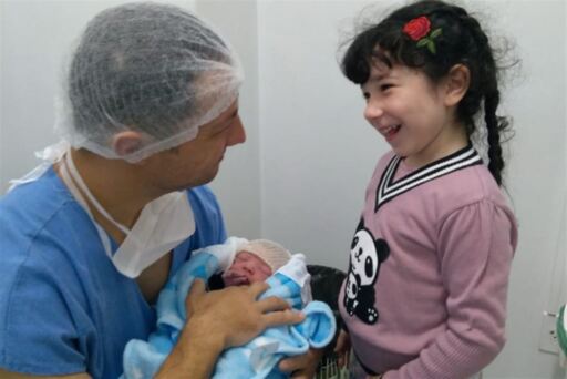 Seleprin estava junto da esposa na sala de cirurgia no momento do parto. Ele segurou a mão dela e se emocionou quando viu o filho nascer.