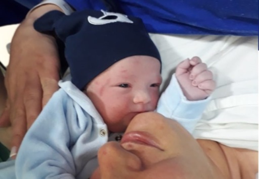 Em 5 de novembro, às 8h05min, no Hospital São Roque, em Faxinal do Soturno, nasceu Enzo Dalmolin Pozzer. Com 3 quilos e 455 gramas e medindo 48 centímetros, ele veio ao mundo para completar a alegria dos pais Franciele Dalmolin Pozzer e Vinícius Pozzer, ambos com 36 anos, e dos irmãos Gabrielly, 19, e Davi, 5. Franciele e Vinícius se conheceram há 11 anos, durante uma cavalgada em Ivorá, cidade onde ela nasceu. Logo, alinharam sonhos, projetos e fé. Em 2012, com a aprovação e carinho da primogênita de Franciele, o casal oficializou a união. Cada vez mais unidos, pediram a bênção de Deus para aumentar a família. Em 2013, nasceu Davi. Agora, cinco anos depois, para a surpresa do casal, foram presenteados com o caçula. Enzo, mesmo tão pequeno, já traz consigo uma história de superação e fé. Após os resultados dos primeiros exames da gestação, a mãe foi aconselhada a não levar adiante a gravidez, já que o bebê fora diagnosticado com sérias complicações.