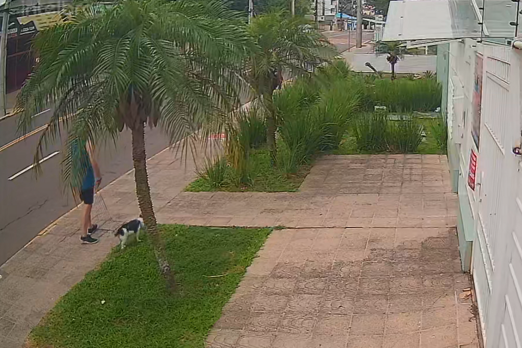 Imagens de câmeras de segurança mostram o momento em que Pithan é atingido na calçada e arremessado por alguns metros enquanto passeava com seu cão.