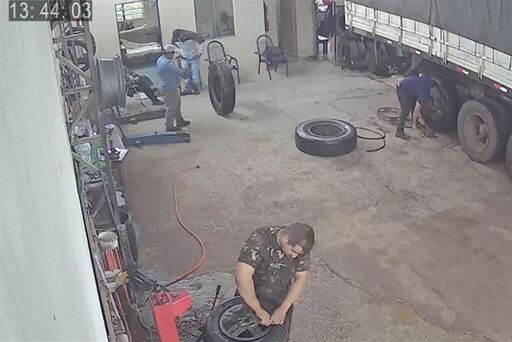 – O procedimento foi feito como de costume. O pneu estava fora há um tempo, foi batido, colocado ar... estava indo normalmente. No momento em que o Vinicius foi levantar o pneu com a alavanca para colocá-lo de volta no caminhão, o aro saiu e aconteceu a explosão. Foi no final do processo – conta.
