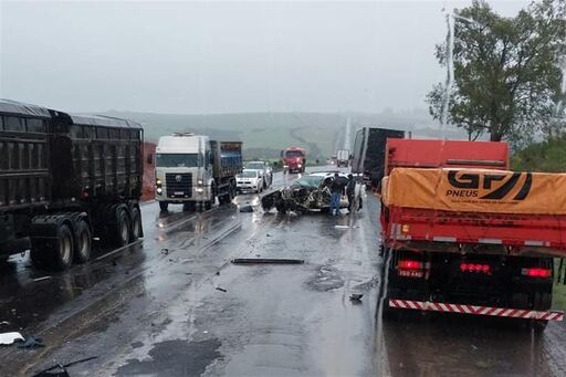 Um motorista que conduzia uma caminhonete Toyota SW4 ficou preso às ferragens após se envolver em um acidente com um caminhão na localidade de Passo dos Buracos, na BR-158, entre os municípios de Júlio de Castilhos e Tupanciretã, na manhã desta quinta-feira (15).