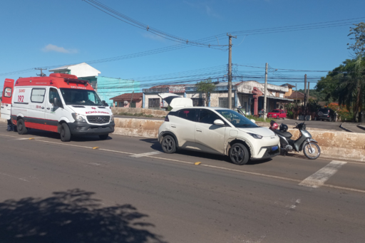 Um carro, modelo BYD Dolphin, colidiu em uma motocicleta Honda Biz 125cc, por volta das 8h desta segunda (23), na ERS-509, Faixa Velha de Camobi, no sentido Centro-Bairro, próximo ao término do viaduto sobre a Avenida Osvaldo Cruz. O acidente deixou duas pessoas com ferimentos leves e causou lentidão no trânsito por alguns minutos.