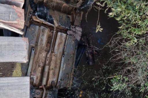 –  Para entrar na ponte, precisa fazer uma curva e aí ingressar na estrutura. A caminhonete entrou reto e caiu na água. A ponte é de madeira e sem sinalização. Eu saí correndo do carro e vi que o carro estava caído e virado, lá embaixo, com as rodas para cima.