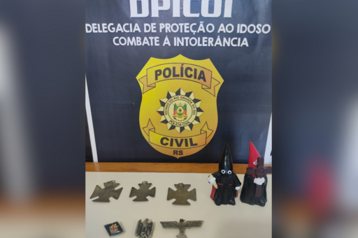 Durante a operação realizada pela Delegacia de Proteção ao Idoso e Combate à Intolerância (DPCOI), foram apreendidos pingentes com suásticas, bonecos da Ku Klux Klan, uma máscara de gás e um capacete militar semelhante aos utilizados na Segunda Guerra Mundial.