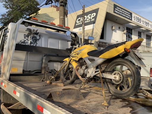Aproximadamente 24 horas depois, a motocicleta modelo CBX Twister 250, da cor amarela, furtada em um estacionamento no centro de Santa Maria, foi recuperada na tarde desta quinta-feira (6).