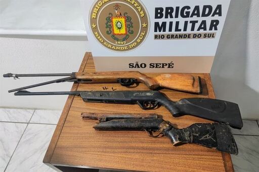 No local, foram apreendidos uma espingarda calibre .22, uma espingarda de chumbinho, uma carcaça de espingarda, uma munição calibre .22 e duas cápsulas deflagradas do mesmo calibre.