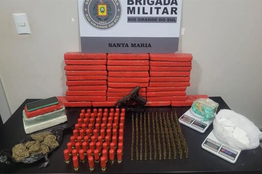 Um jovem de 26 anos foi preso em flagrante por tráfico de drogas e posse ilegal de arma de fogo na noite de domingo (27), na Rua Pernambuco, Bairro Parque Pinheiro Machado, em Santa Maria. O caso foi registrado após abordagem da Brigada Militar.