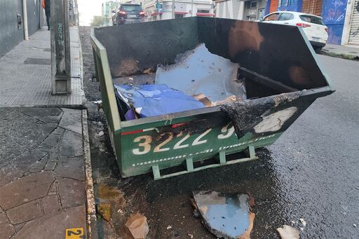 Caçamba de entulho é incendiada no Centro de Santa Maria e Bombeiros controlam fogo