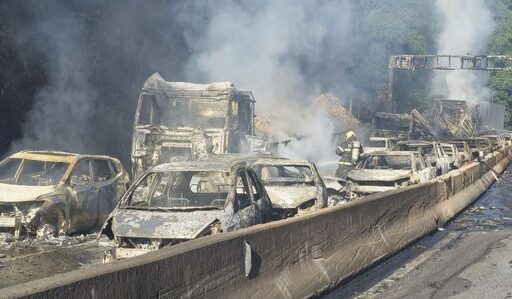 As chamas se alastraram rapidamente e destruíram os veículos próximos ao local do tombamento. Imagens gravadas por testemunhas mostram a extensão dos danos provocados pelo incêndio.