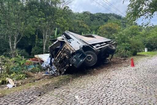 Um caminhão que transportava uma carga de gelo tombou por volta das 10h20min desta quarta-feira (12). O acidente aconteceu na Estrada do Perau, no trecho próximo ao Bairro Campestre do Menino Deus.