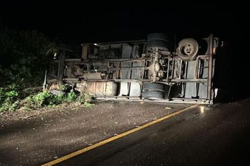 De acordo com a ocorrência, o caminhão seguia no sentido São Francisco de Assis quando apresentou uma falha mecânica em uma subida íngreme, nas proximidades do portão de acesso à URI. Sem força, o veículo começou a descer de ré, e o motorista precisou realizar uma manobra para evitar um acidente mais grave, resultando no tombamento.