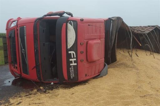 Na manhã desta terça-feira (19), um caminhão que transportava soja tombou próximo ao monumento Oferta do Chimarrão, na BR-158, em Júlio de Castilhos. A única vítima foi o motorista do veículo, que teve uma lesão em um dos braços, mas se apresentava estável e consciente.