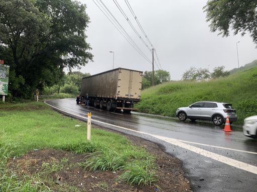 Na manhã desta terça-feira (8), um caminhão sofreu problemas mecânicos enquanto trafegava na alça de acesso que liga a Faixa Nova de Camobi à BR-158 e à Avenida Fernando Ferrari, na rotatória da Rodoviária de Santa Maria. Houve estreitamento da pista e a via foi sinalizada até que o concerto fosse feito. Agora, o fluxo flui normalmente no local.