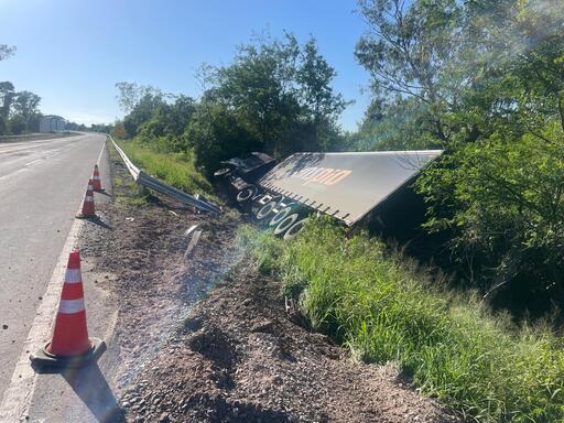 Um caminhão, Volvo FH 460 com placas de Boa Vista do Sul, que trafegava no sentido Santa Maria – Restinga Sêca, saiu da pista na RSC-287, no km 229, após uma colisão transversal com um carro, Jeep Compass, com placas de Dona Francisca. O acidente aconteceu por volta das 17h40min de quinta-feira (2), próximo à Base Aérea de Santa Maria.