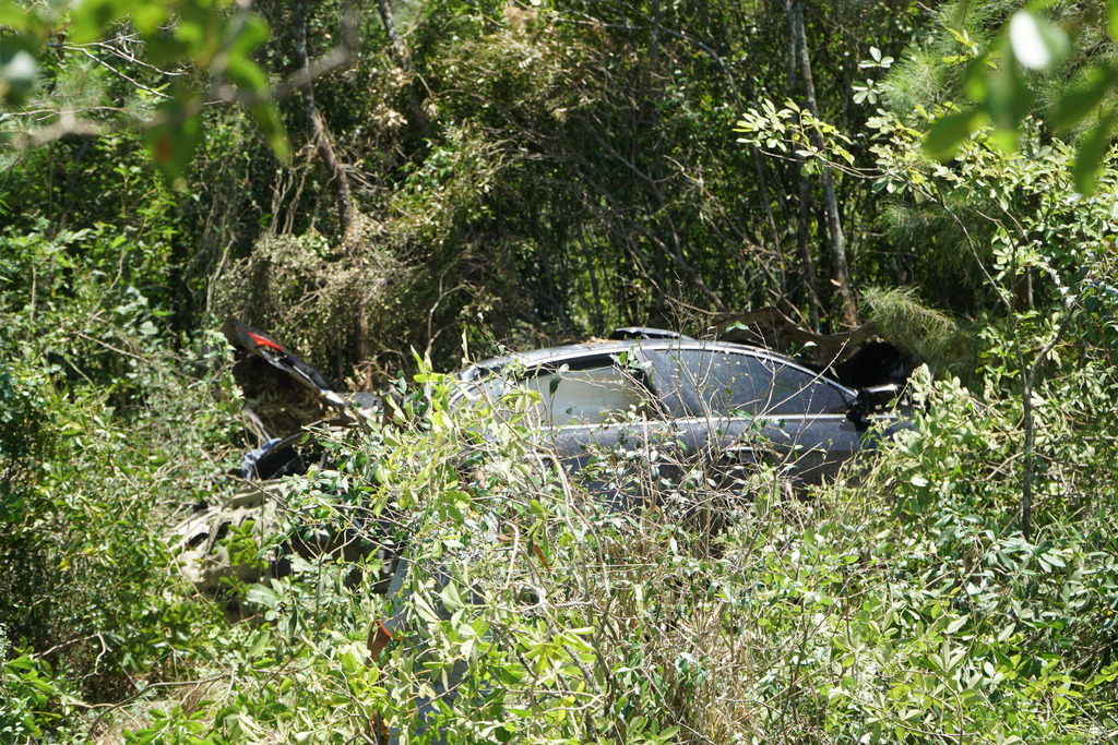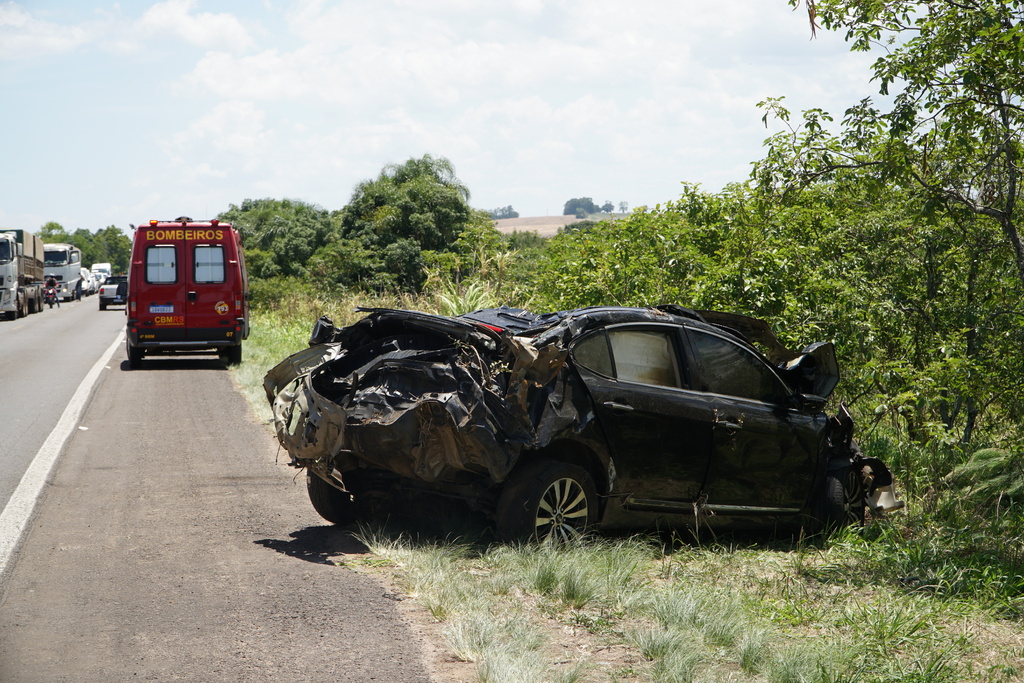A retirada do automóvel exigiu uma operação complexa. Um guincho utilizou cabos de aço para puxar o veículo, mas a presença de árvores dificultou a manobra. Após diversas tentativas, o carro foi colocado no acostamento pouco depois das 13h, permitindo o acesso da perícia. O veículo ficou completamente destruído, indicando um possível capotamento.