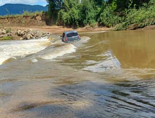 Um veículo Sandero que carregava três adultos e uma criança ficou preso ao tentar cruzar a Barragem do Pique, na comunidade de Sítio dos Mellos, em Faxinal do Soturno. O caso aconteceu na manhã deste sábado (26).