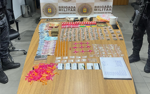 Ao todo, foram apreendidos535,5 gramas de maconha, sendo uma porção de 35g, meia barra de 335g e 110 porções totalizando 165g. Também foram encontradas 13,5 gramas de crack divididas em 31 embalagens, além de 138,1 gramas de cocaína distribuídas em 53 pinos grandes, 37 pinos pequenos e 10 embalagens zip lock. Também foi apreendida uma porção de haxixe com 0,5 grama. No local havia ainda dois celulares, uma balança de precisão, um pote com pó branco utilizado para mistura com cocaína, oito isqueiros, 35 papéis seda (comuns e saborizados), um pacote contendo ependorfs e sacos plásticos para embalar drogas, além de R$ 738,50 em espécie.