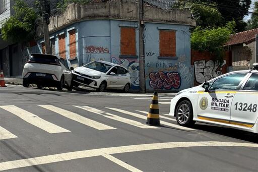 Um acidente de trânsito foi registrado na manhã desta terça-feira (24) no centro de Santa Maria. A colisão ocorreu no cruzamento das ruas Silva Jardim e Barão do Triunfo e envolveu dois veículos, um Hyundai HB20 e um BYD.