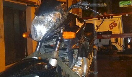 A Brigada Militar (BM) de Santa Maria prendeu em flagrante um motociclista por direção perigosa, na madrugada de sábado. De acordo com os policiais militares do 2º Batalhão de Polícia de Choque o indivíduo de 42 anos trafegava pela BR-158 em alta velocidade. Ao se aproximar para a abordagem, o condutor não parou e subiu em calçadas, canteiros, passou por sinais vermelhos e, ao sair da rodovia, se chocou contra um viaduto.