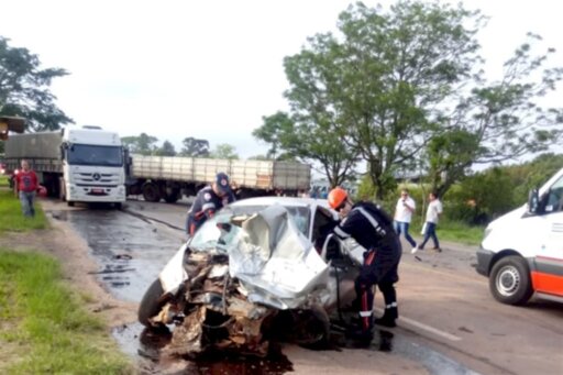 De acordo com a Polícia Rodoviária Federal (PRF), um Corsa, com placas de Santa Maria, teria entrado na rodovia quando foi atingido por um caminhão que trafegava na via. Ele acabou indo parar na pista contrária e atingido por outro caminhão que trafegava na BR-392.