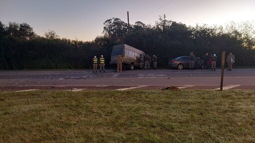 Dois policiais militares ficaram feridos em um acidente de trânsito no início da manhã desta quinta-feira em São Vicente do Sul. Não há informações sobre o estado de saúde dos motoristas e passageiros dos carros. O acidente envolveu um micro-ônibus da Brigada Militar (BM), um Corolla e uma Duster, no trevo da BR-287 com a ERS-241. A Polícia Rodoviária Federal (PRF) de Santiago atendeu ao chamado do acidente e fez o registro da ocorrência. As circunstâncias do acidente serão investigadas pela Polícia Civil