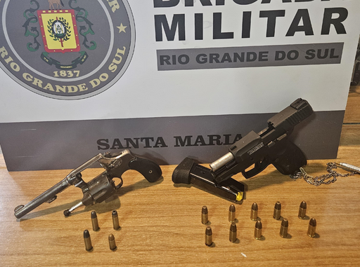 Durante o patrulhamento na região, os policiais localizaram a dupla e realizaram a abordagem. Um dos jovens portava um revólver calibre 32 na cintura, enquanto o outro carregava uma pistola 9mm. Além das armas, foram apreendidas quatro munições calibre 32 e dez munições calibre 9mm.