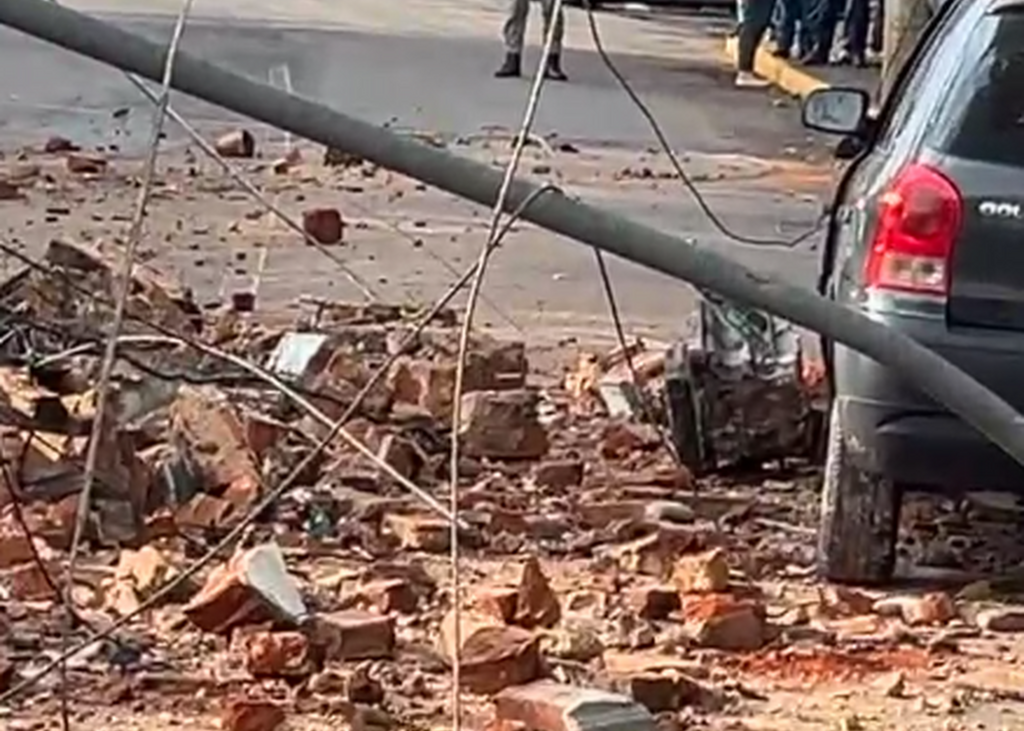 Parte da estrutura de uma casa desabou e atingiu um carro na tarde deste domingo (3), na Rua Pinheiro Machado, no centro de Cruz Alta. As informações são do repórter Fábio Maragon, da Rádio Cruz Alta. O espaço é conhecido como "antigo Velha Guarda".
