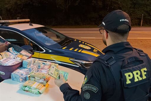 Com base na denúncia, os policiais localizaram o veículo e realizaram a abordagem. Dentro do carro foram encontrados maços de dinheiro escondidos em malas e junto ao estepe.