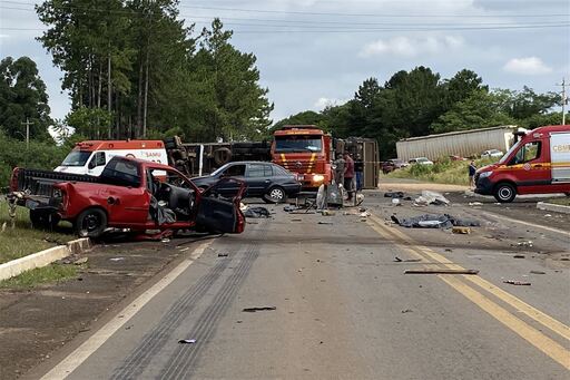 Além da carreta, os veículos envolvidos no acidente foram uma caminhonete Ford Courier e um Renault Clio, ambos emplacados em Santiago. A placa da carreta bitrem não foi divulgada. De acordo com a Polícia Rodoviária Federal (PRF), que atendeu a ocorrência, o motorista da caminhonete, identificado como João Carlos Flores e Silva, de 57 anos e morador de Santiago, morreu no local.