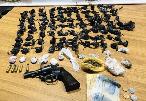 Durante a operação, os policiais realizaram uma abordagem e, após buscas, apreenderam 103 porções de maconha, uma porção de crack, um revólver calibre 38 com cinco munições e R$ 57,20.