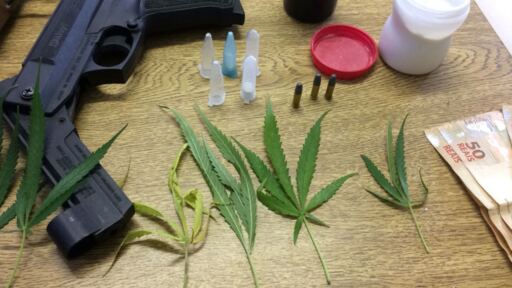 De acordo com a Polícia Civil, durante um cumprimento de mandado de busca e apreensão na casa do preso, foram apreendidos um pé de maconha, cinco pinos e mais de 87 gramas de cocaína em um pote, dinheiro, duas armas de ar comprimido e munições.