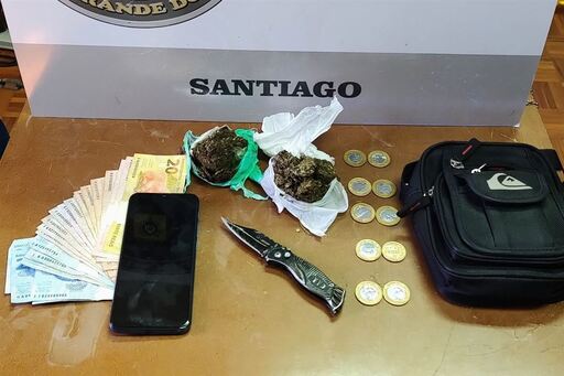 Um homem de 43 anos foi preso na tarde de segunda-feira (21) por tráfico de drogas no Bairro Alto da Boa Vista, em Santiago. Suspeito estava em frente de uma escola. Policiais da Força Tática do 5º Regimento de Polícia Montada (5ºRPMon), durante patrulhamento na região, receberam informações de que o homem estaria em atitude suspeita no local.