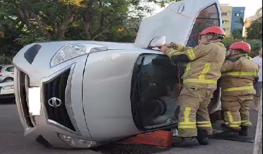 Um homem não identificado ficou ferido ao capotar o veículo que conduzia, um Nissan Versa com placa de Itapejara D’oeste, Paraná, por volta das 18h50min de domingo (18), na Rua Carlos Uhr, no bairro Uglione, em Santa Maria.